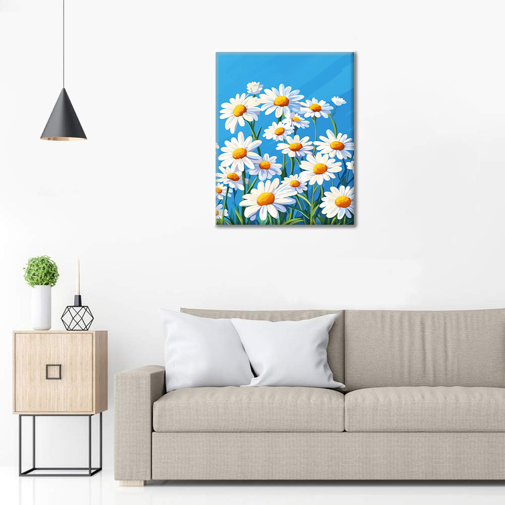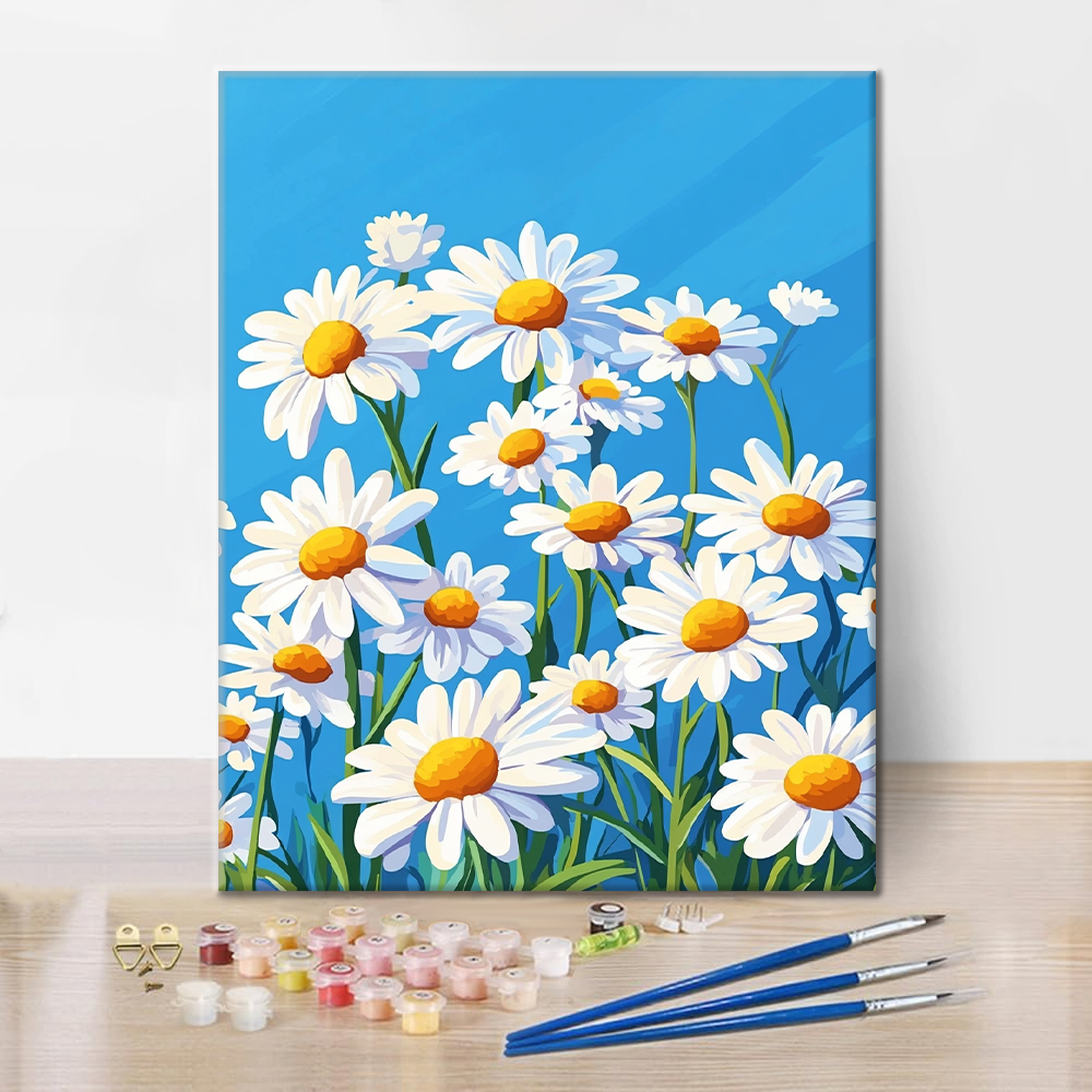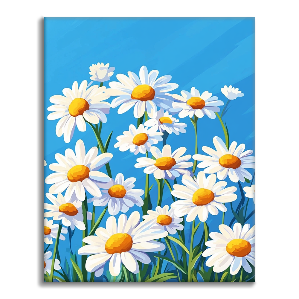 青空の下のヒナギク - 数字で塗り絵