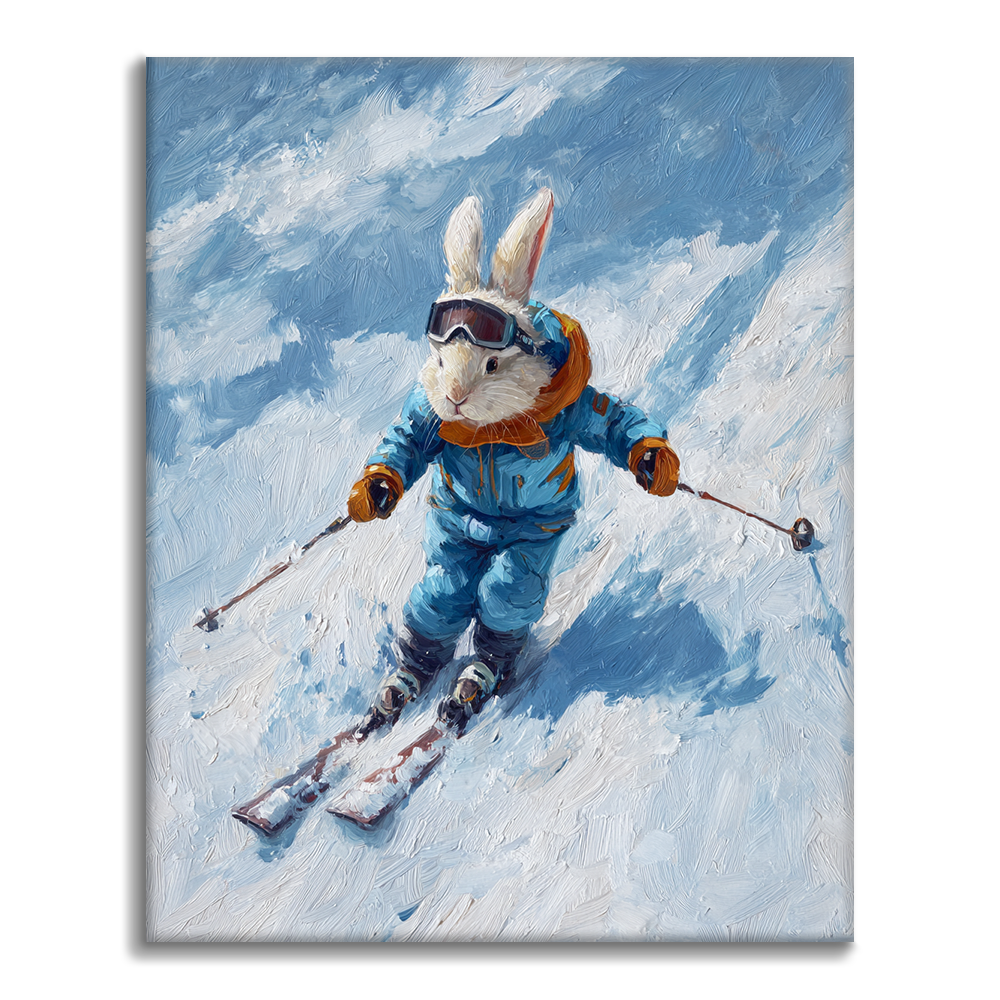 スピード感あふれる雪うさぎ - 数字で塗り絵