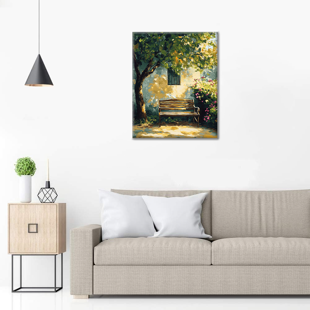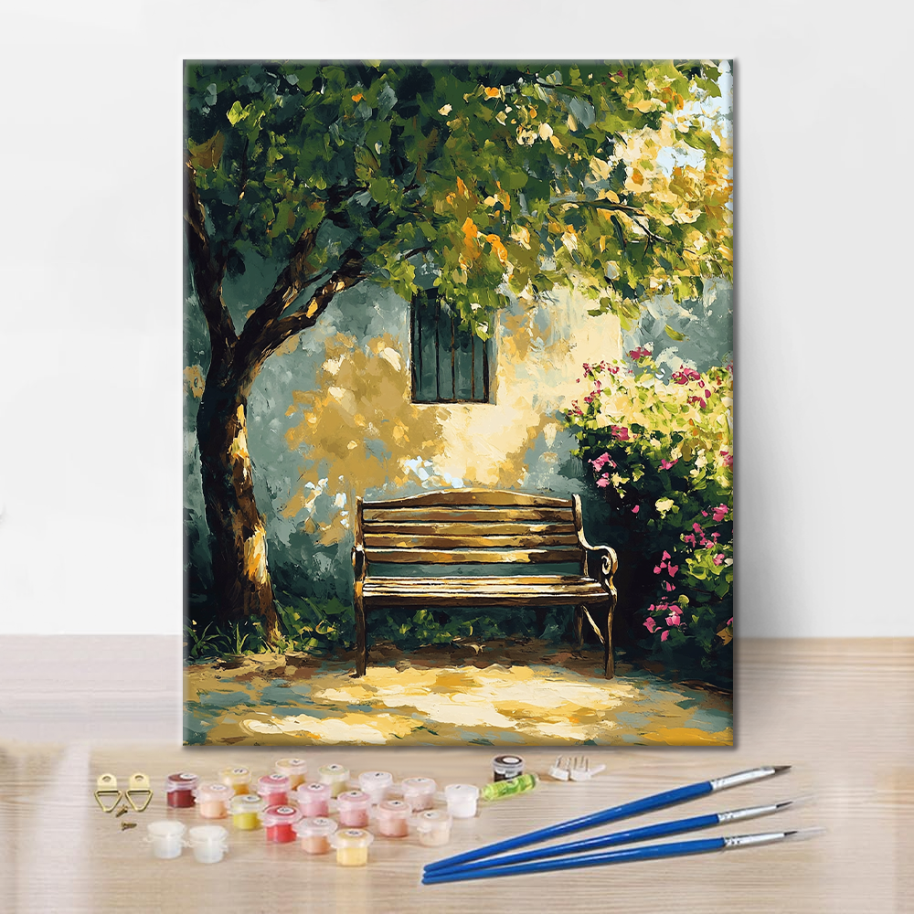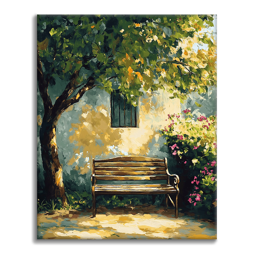 日光に照らされたベンチ - 数字で塗り絵