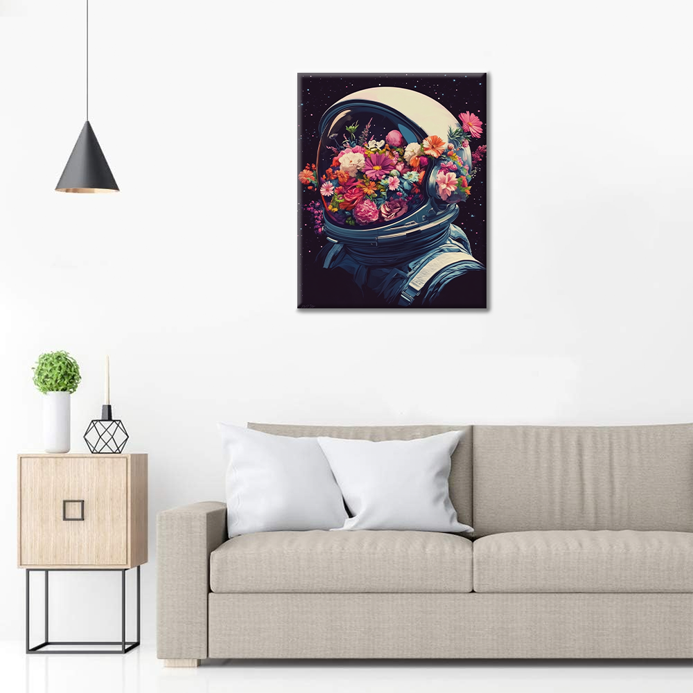 花いっぱいの宇宙ヘルメット - 数字で塗り絵