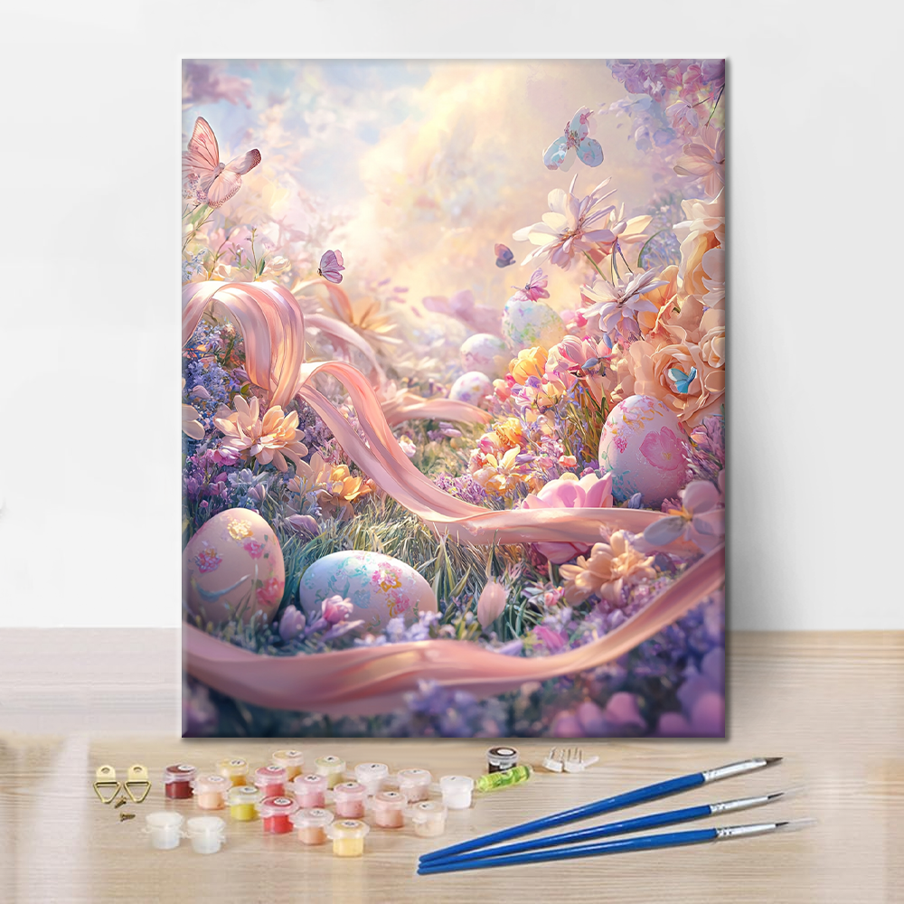 パステルカラーのイースターの楽しみ - 数字で塗り絵