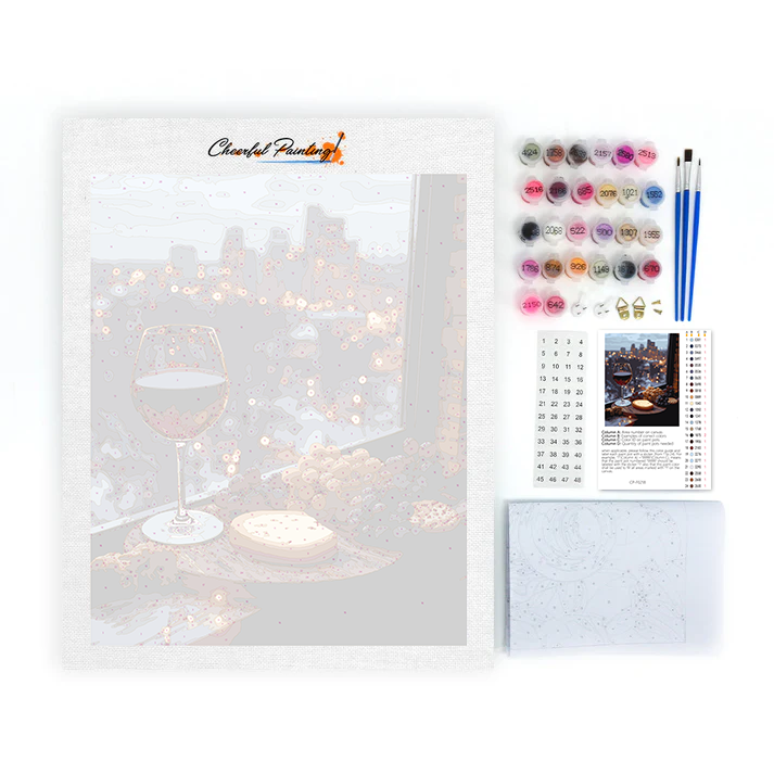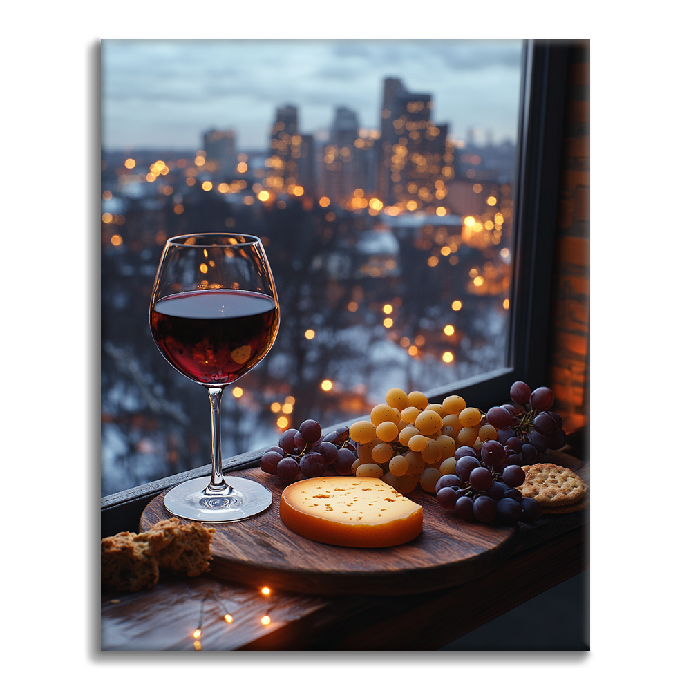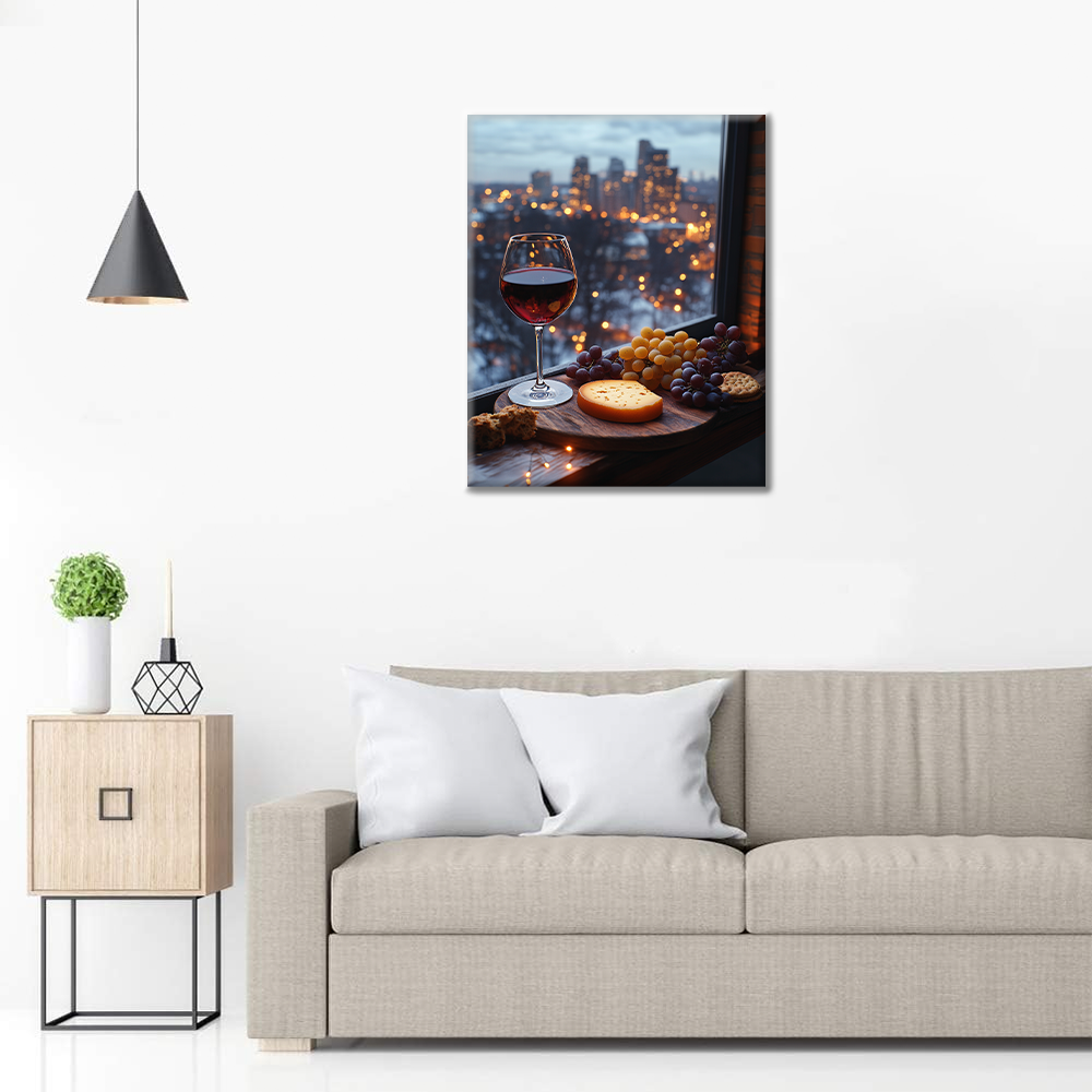 ワイン、チーズ、街の灯り - 数字で塗り絵